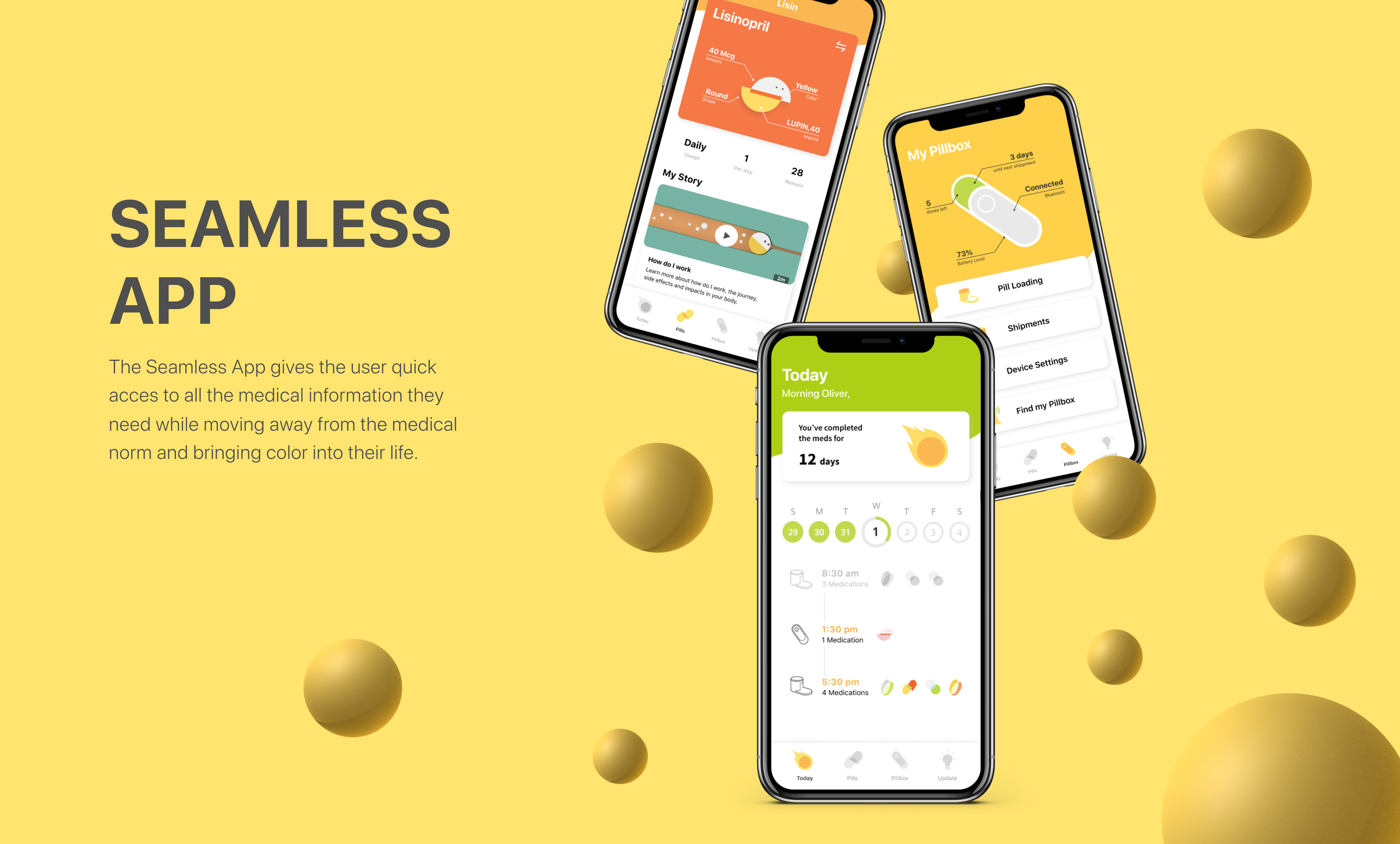 A system to help users take their medication independently and provide emotional relief through technology and design.